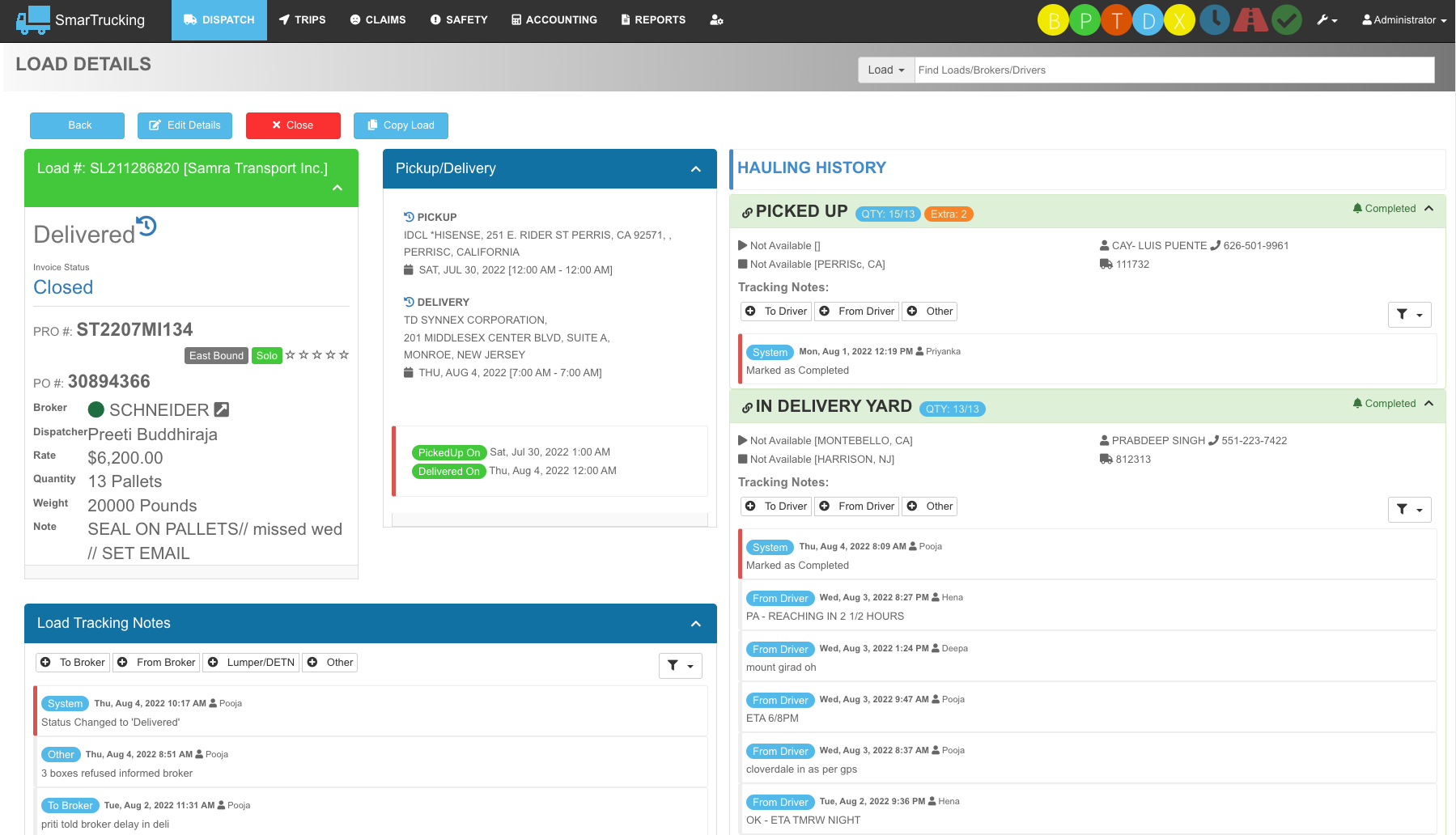 Dispatch / Tracking